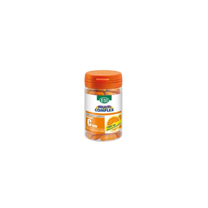 Vitamina C Pura 1.000 mg de ESI es un complemento nutricional de efecto retard que ayuda a una absorción gradual de la vitamina C en el organismo. Contribuyendo a mantener un sistema inmunitario fuerte. Comprimidos de liberación prolongada que actúan durante 3 horas. Cada dosis contiene la cantidad de Vitamina C equivalente a dos kilos de naranjas. No contiene derivados de la leche, gluten, lactosa ni OGM. Indicado para adultos y niños mayores de 3 años. Apto para veganos.