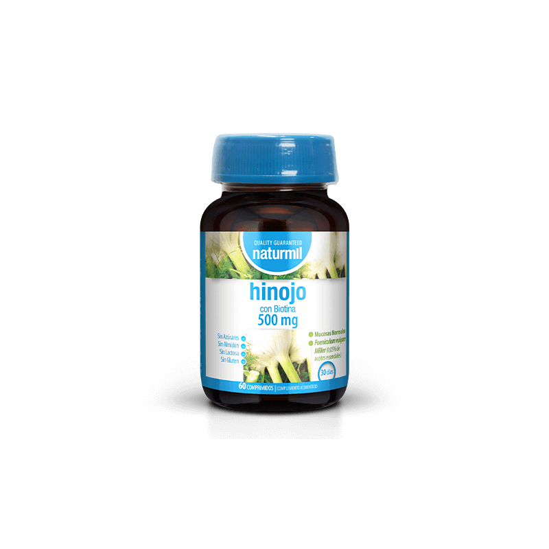 El Hinojo de Naturmil es un complemento alimenticio formulado a base de hinojo y biotina que favorece el confort digestivo, mejorando las digestiones y contribuyendo la expulsión de gases.