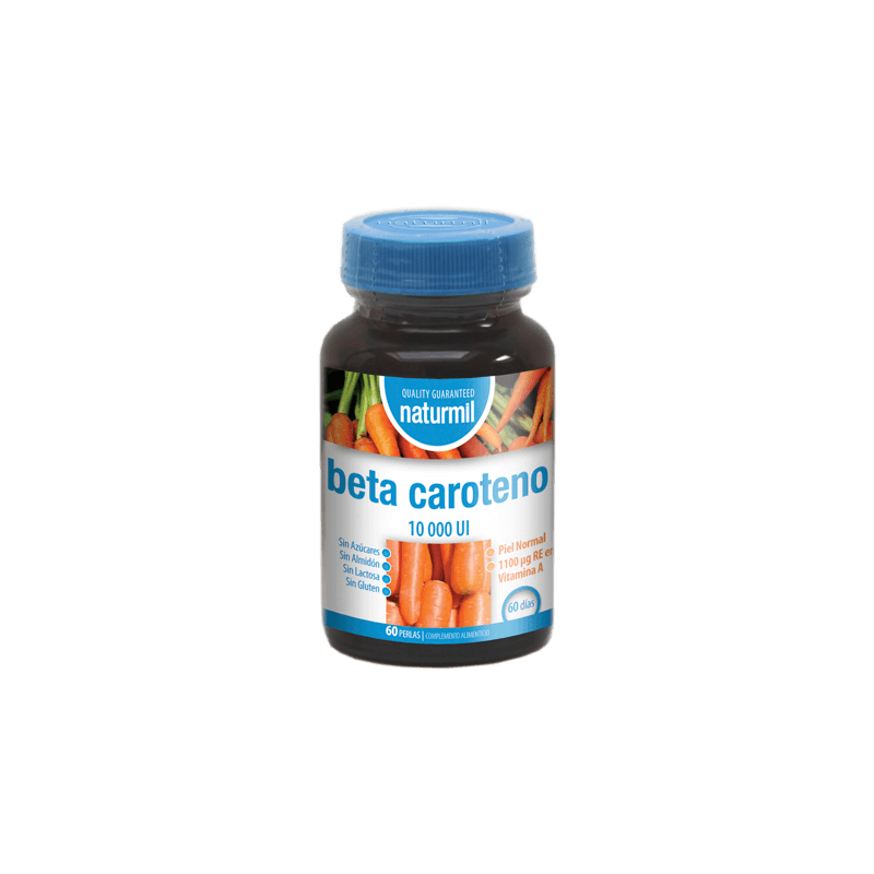 Betacaroteno Naturmil es un complemento a base de vitamina A. La vitamina A contribuye al mantenimiento de la piel en condiciones normales.