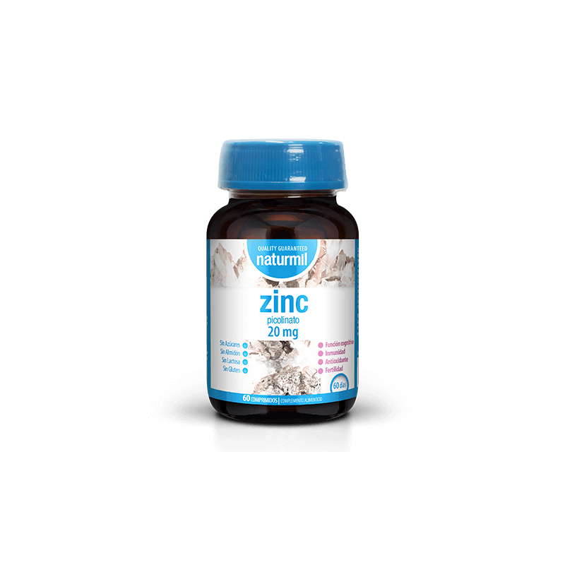 Zinc de Naturmil es un complemento alimenticio que refuerza el sistema inmunitario, mejora la función cognitiva y la fertilidad.
