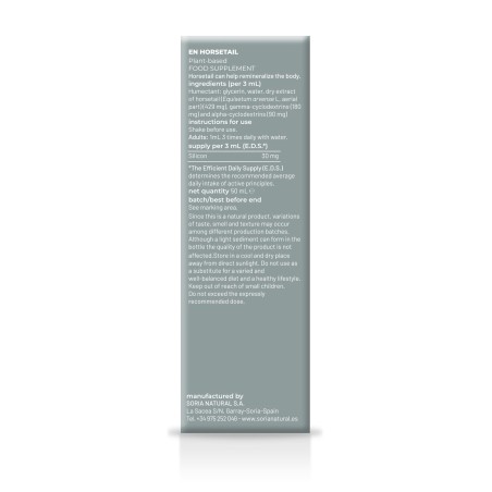 Extracto de Cola de Caballo de Soria Natural es un complemento nutricional conocido por sus efectos diuréticos y su alto contenido en silice mineral.