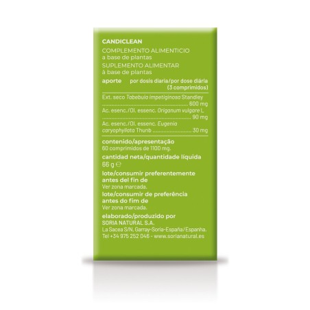 Candiclean de Soria Natural es un suplemento natural que ayuda a reducir la colonización por levaduras en el colon, gracias al aceite esencial de Orégano que tiene un potente efecto como antibiótico natural y sobretodo destaca su utilidad en casos de cándidas o candidiasis intestinal. El orégano tiene una actividad anticándida o anticandidiasis muy superior por ejemplo al ácido caprílico, ya que tiene gran poder antifúngico.