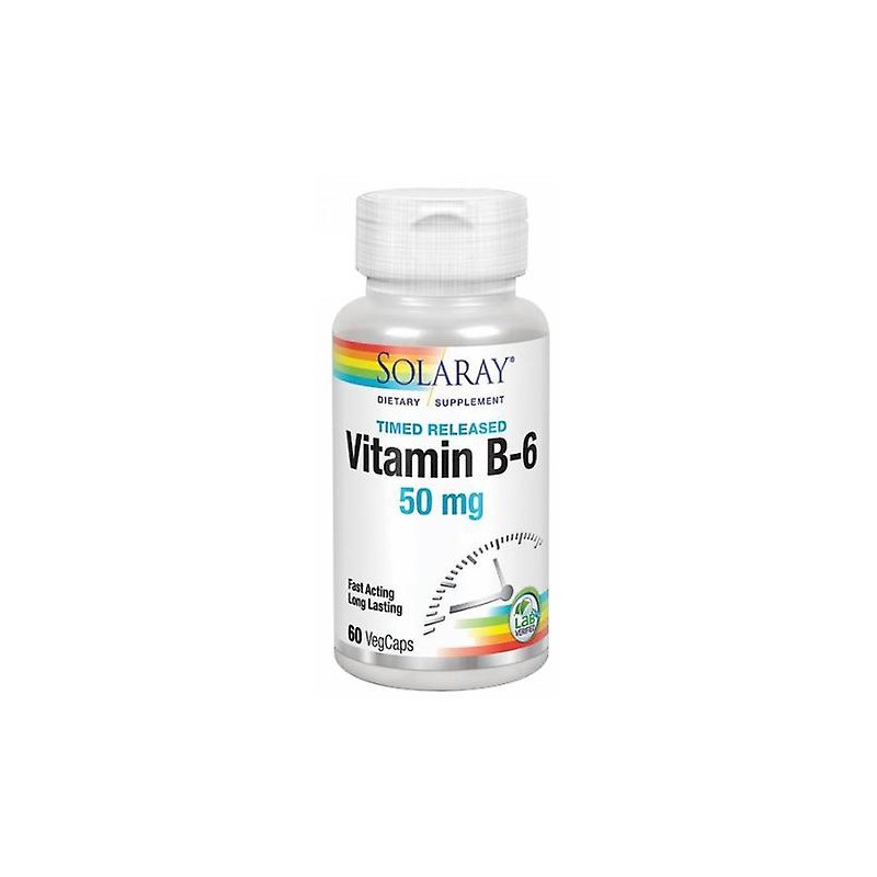 Vitamin B6 de Solaray es un complemento nutricional que aporta la vitamina que está involucrada en más procesos corporales básicos. Indicación La vitamina B6 probablemente está involucrada en más procesos corporales que ninguna otra de las vitaminas B. Es popular entre las mujeres como complemento dietético premenstrual, para favorecer el metabolismo de los ácidos grasos esenciales y el equilibrio de los líquidos. Está sólidamente reconocido que deficiencias de vitamina B6 pueden incrementar los niveles sanguíneos de homocisteína, un factor relacionado con desequilibrios en el bienestar cardiovascular.